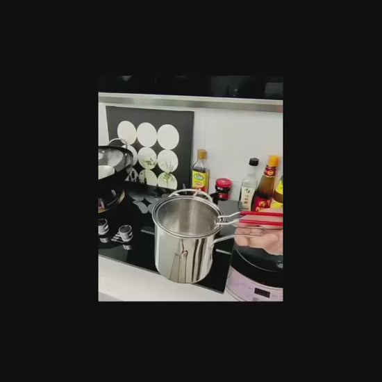 Stainless Steel Deep Fryer with Strainer Basket – 1200ml Oil Pot | Frying & Oil Draining Pot for Kitchen Use